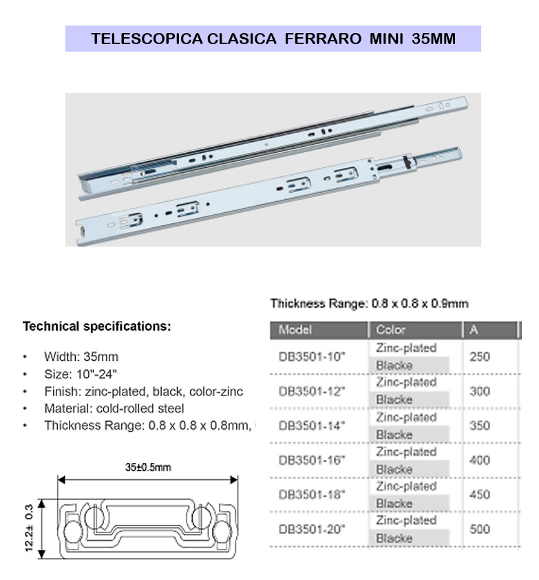 Telescopica Clasica Ferraro 45MM (1,0X1,0X1,2)