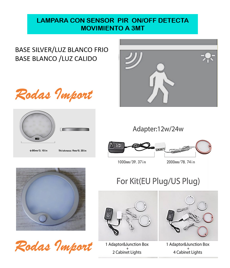 Lampara con Sensor PIR ON / OFF Detecta Movimiento a 3MT