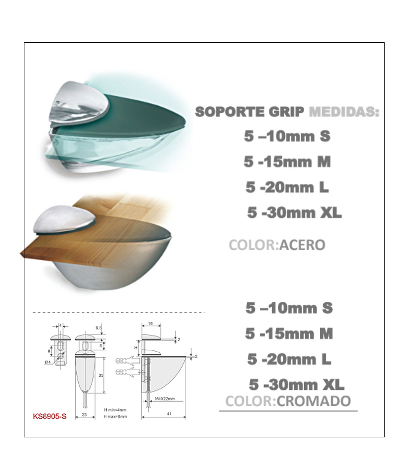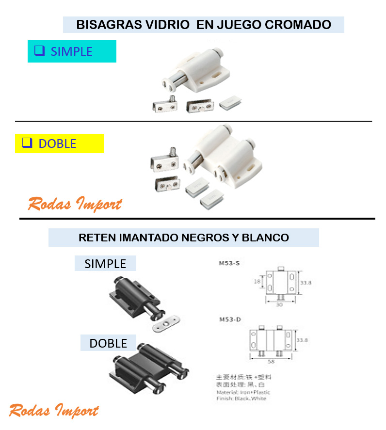 Bisagras Vidrio en Juego Cromado - Reten Imantado